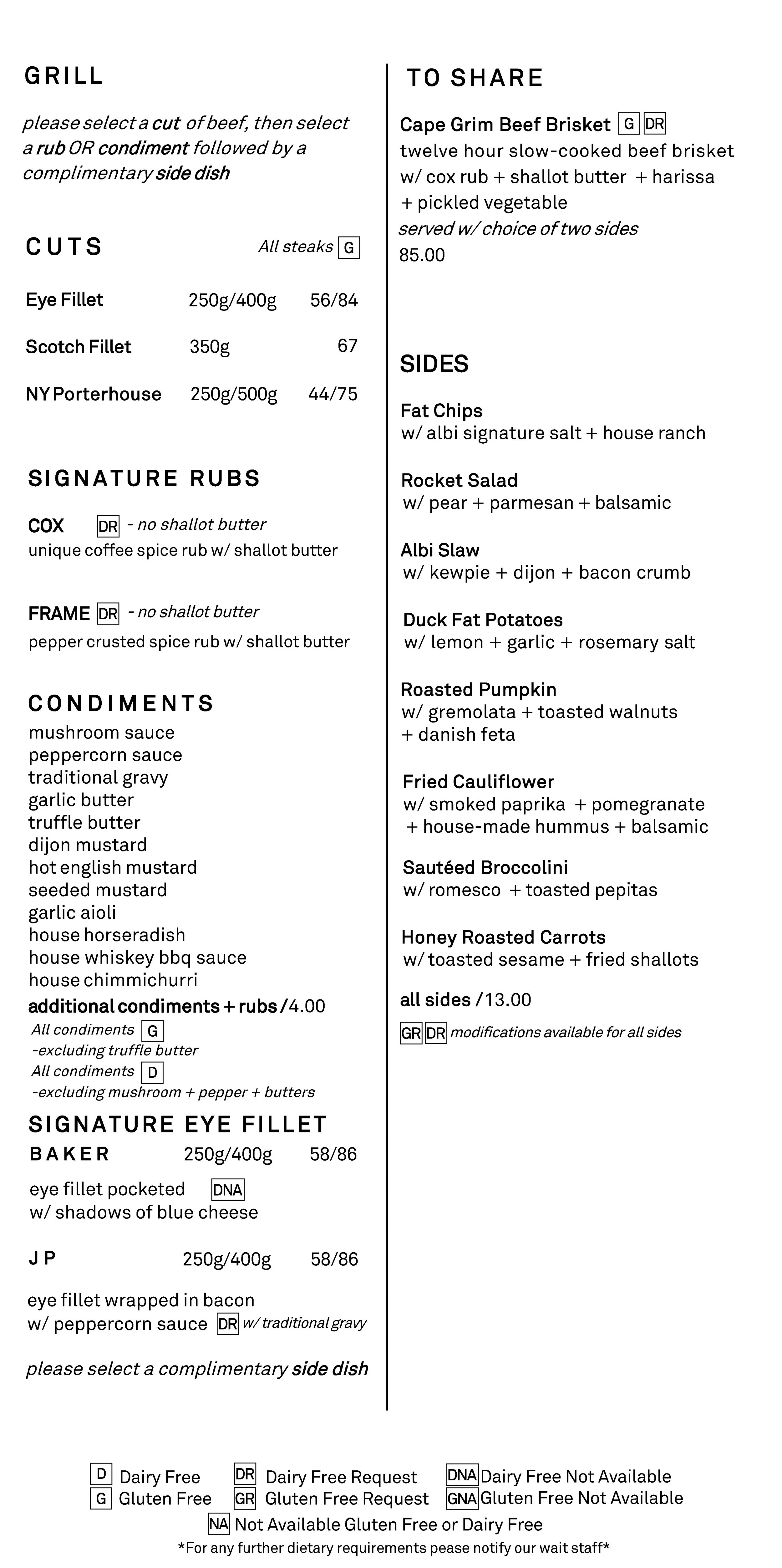 A La Carte - Gluten + Dairy Free Options
